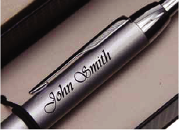 Our machines offer engraving on not only flat hard surfaces but also on round surfaces from only a few degrees up to full 360-degree engraving. Also, engraving is possible not only on metallic surfaces but also on non-metallic surfaces such as plastic (eg. Pens, bottles), Jute (eg. Jute bags), rubberized surfaces, hardboard surfaces (eg. Notebooks) and Leather surfaces (eg. Portfolios, organizers, wallets etc.)